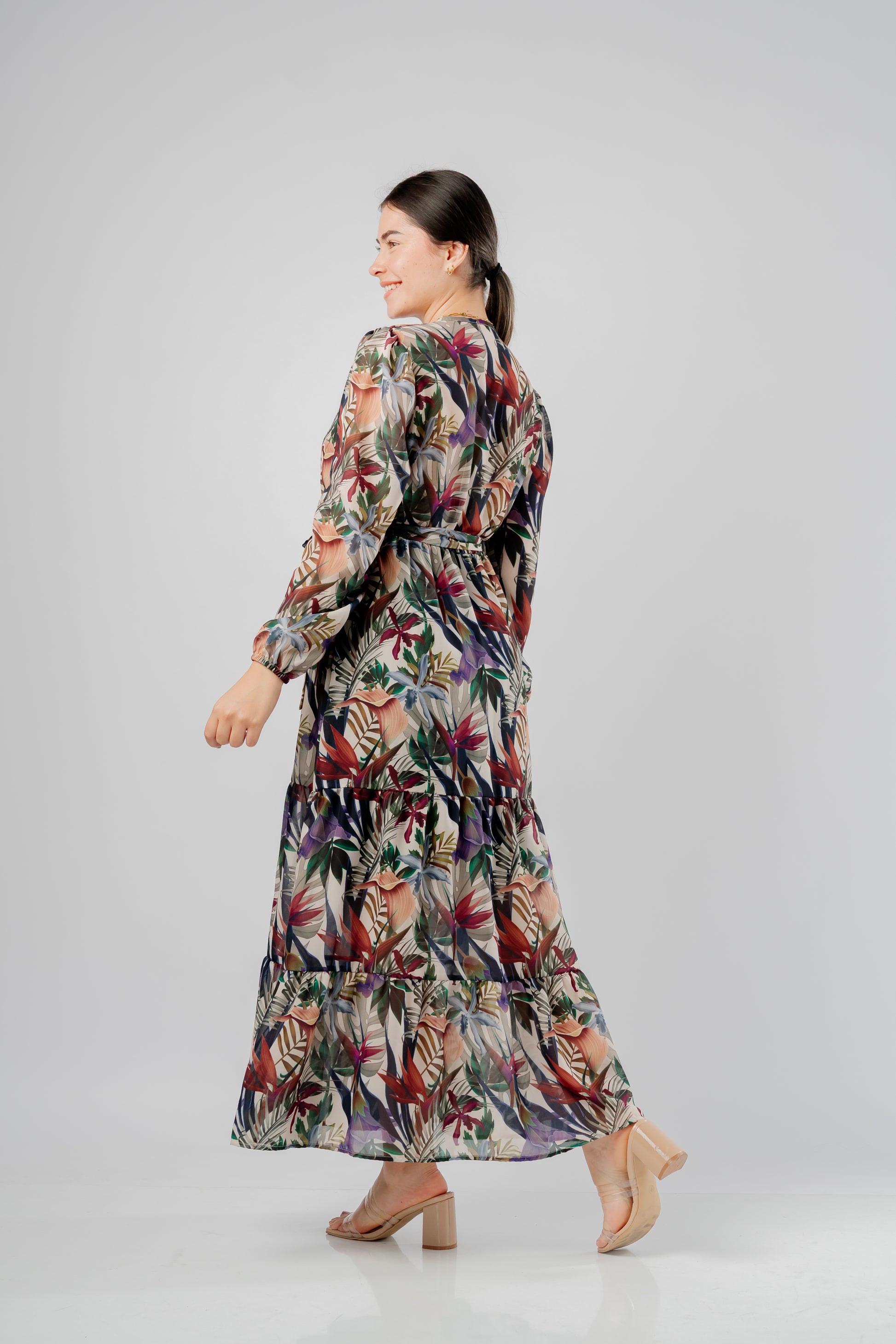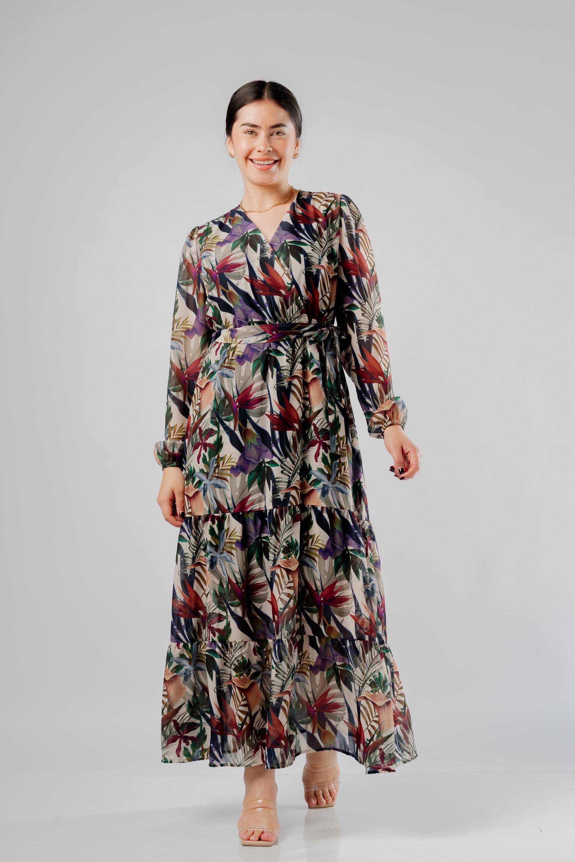 Descripción: Vestido largo hecho en gasa, es un diseño muy elegante y a la vez versátil. Puedes elevar tu look como la invitada perfecta o usarlo de manera casual con unas botas o sandalias. Créeme será uno de los favoritos en tu armario. Sus mangas largas le aportan sofisticación y lleva elástico en cintura para adaptarse a tu figura. El lazo de misma tela para usarlo en modo de cinturón te permite acentuarlo a tu figura.