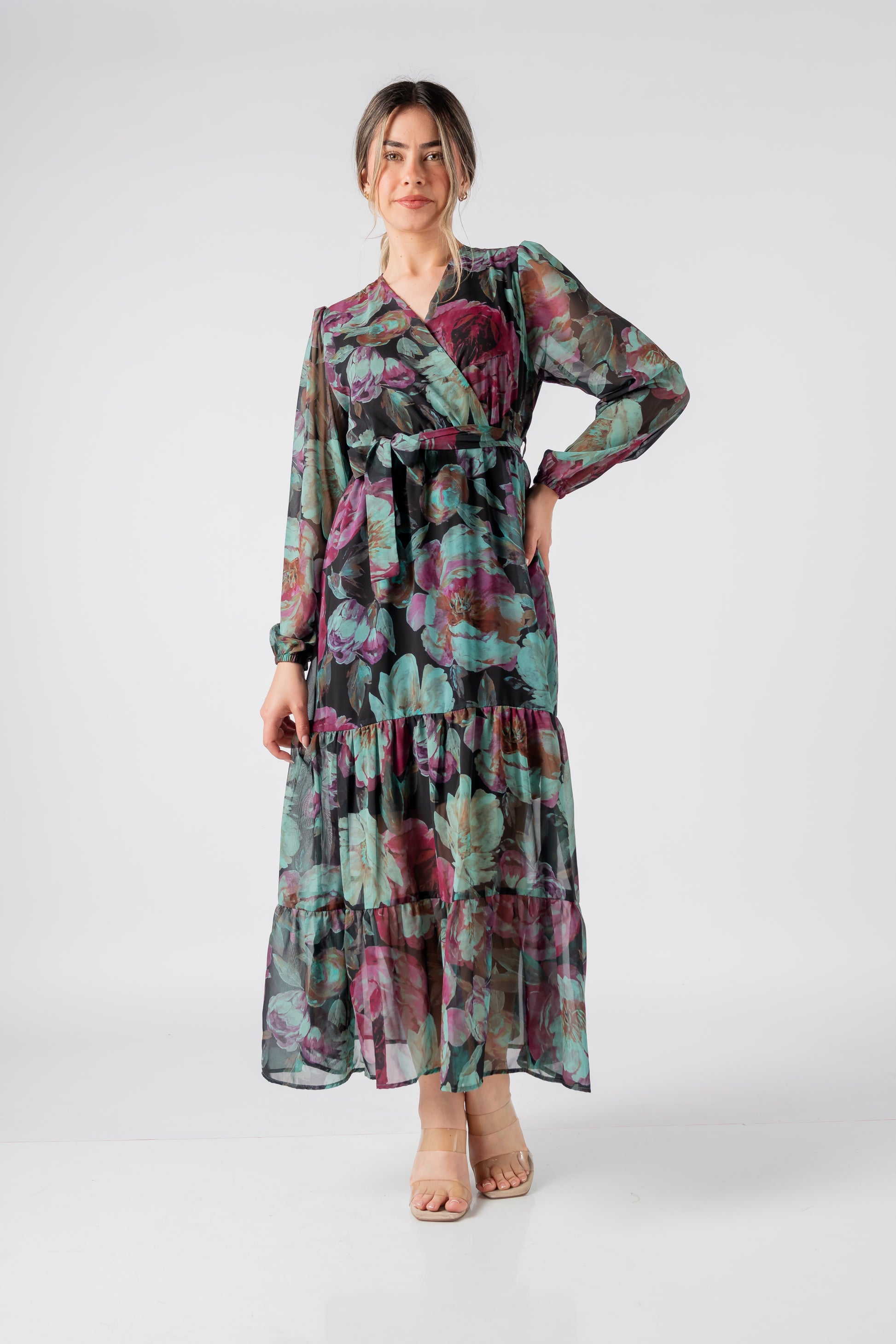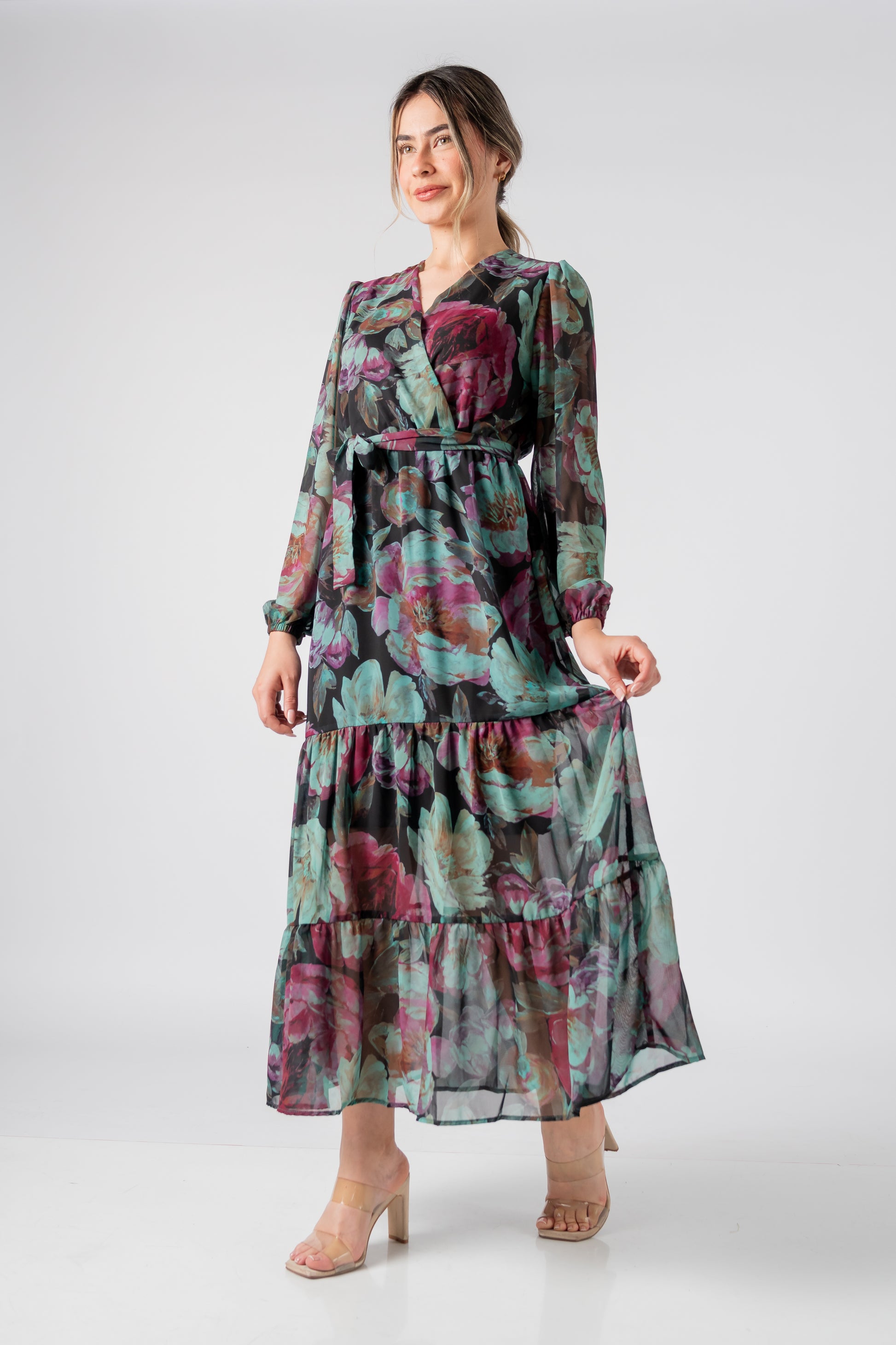 Descripción: Vestido largo hecho en gasa, es un diseño muy elegante y a la vez versátil. Puedes elevar tu look como la invitada perfecta o usarlo de manera casual con unas botas o sandalias. Créeme será uno de los favoritos en tu armario. Sus mangas largas le aportan sofisticación y lleva elástico en cintura para adaptarse a tu figura. El lazo de misma tela para usarlo en modo de cinturón te permite personalizar el look según la ocasión.